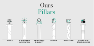 El desarrollo y enfoque de Torrecid Group desde su fundación siempre se ha basado en sus pilares fundamentales: ética, innovación sostenible, excelencia y calidad, servicio, marketing y cuidado a los colaboradores.