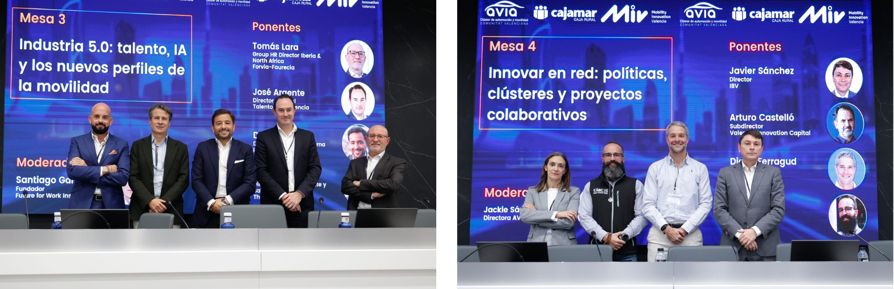En esta mesa han participado Javier Sánchez, coordinador de REDIT Mobility, Josep Nadal, del Clúster de automoció de Catalunya y Diego Ferragud de Startup Valencia. La moderadora de esta mesa ha sido la directora de AVIA, Jackie Sánchez Molero.