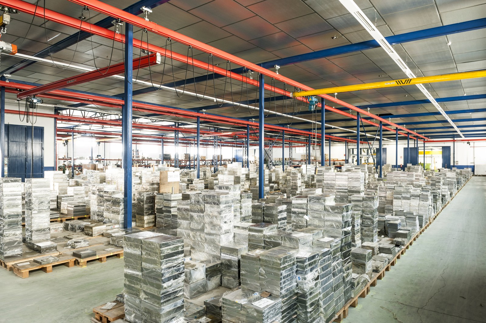 Bru y Rubio dispone de un almacén con más de 1000 toneladas (1 millón de kgs) de placas para moldes terminadas, con más de 35000 placas acabadas.