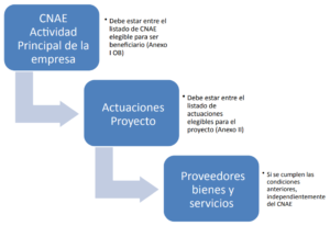 • Pueden ser beneficiarios exclusivamente las entidades con CNAE “principal” recogido en el Anexo I. El resto de agentes clave únicamente tendrán cabida como subcontratistas.